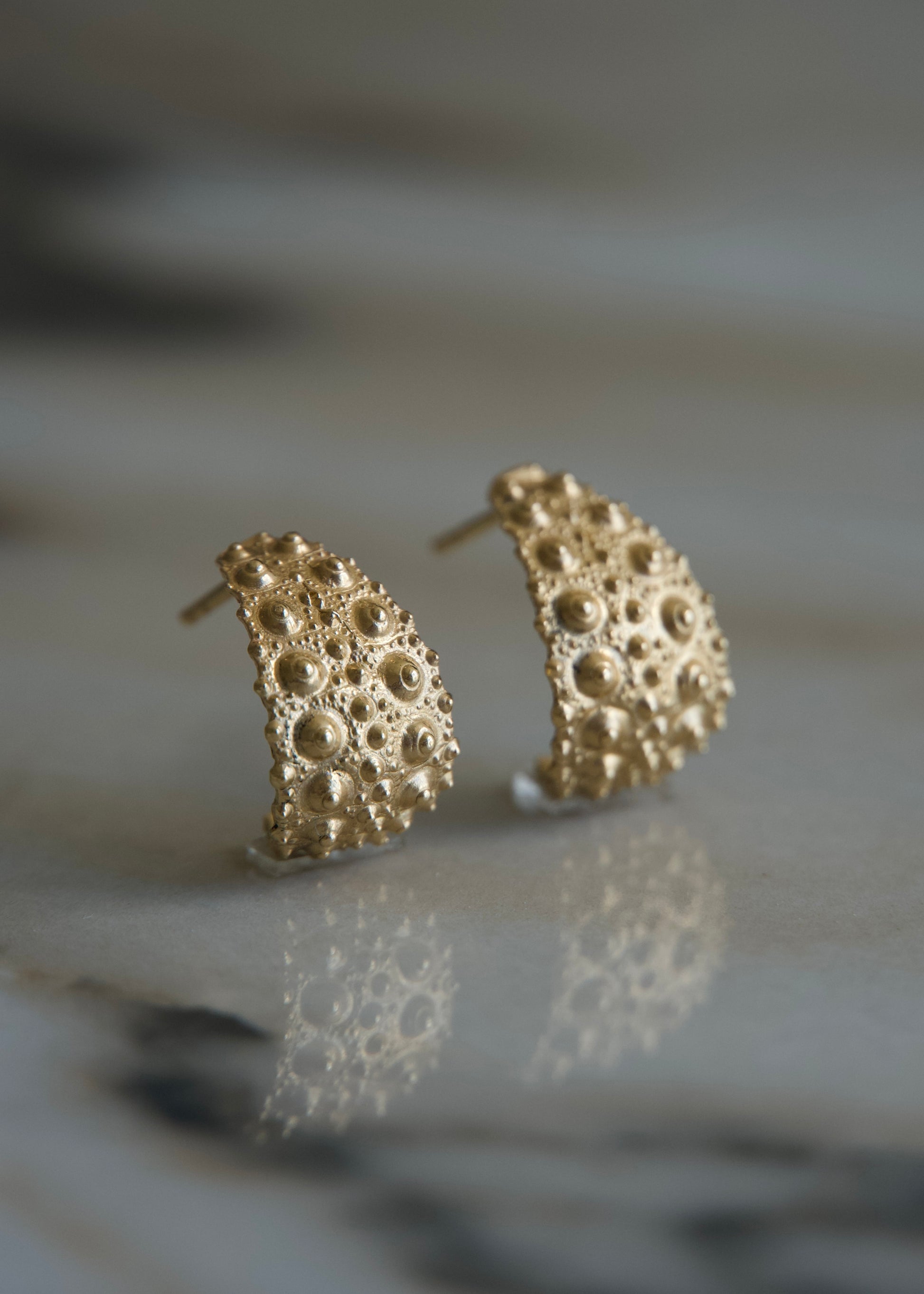 Our version of the classic teardrop earrings featuring wana, sea urchin pattern